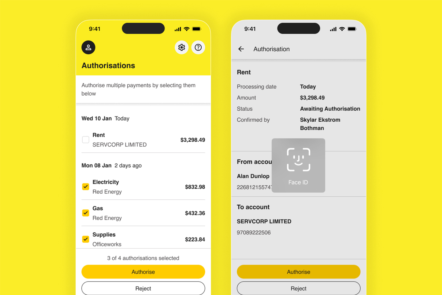 The payment authorisation flow was central to the happy path. We designed a clean list where users select one or multiple payments, then approve using Face ID. This single change transformed a core business process, making it feel fast and secure.
