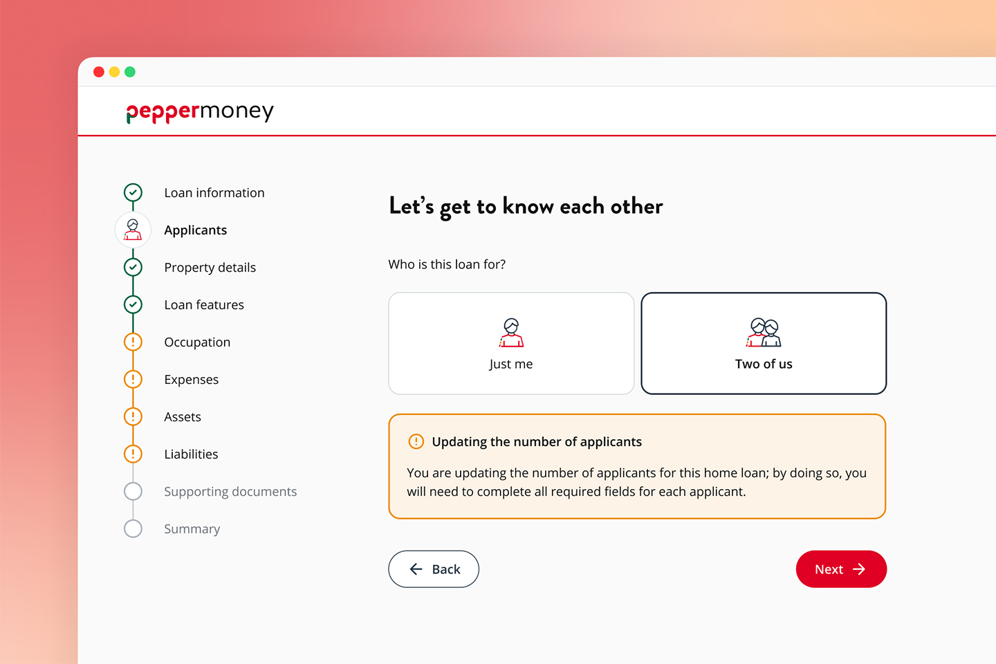 Concevoir le premier parcours hypothécaire entièrement numérique de Pepper Money. Donner le contrôle aux clients. Réduire la dépendance vis-à-vis du centre d'appels. Créer quelque chose qui puisse être compétitif.