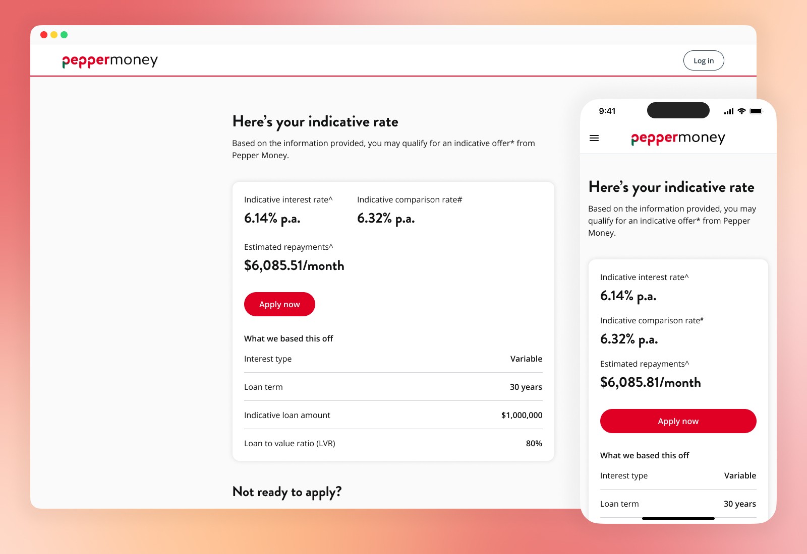 Transformed a paper-based mortgage application into Pepper Money's first fully digital, self-service journey, reducing inbound call volume and eliminating manual data entry errors across a 9-month project.