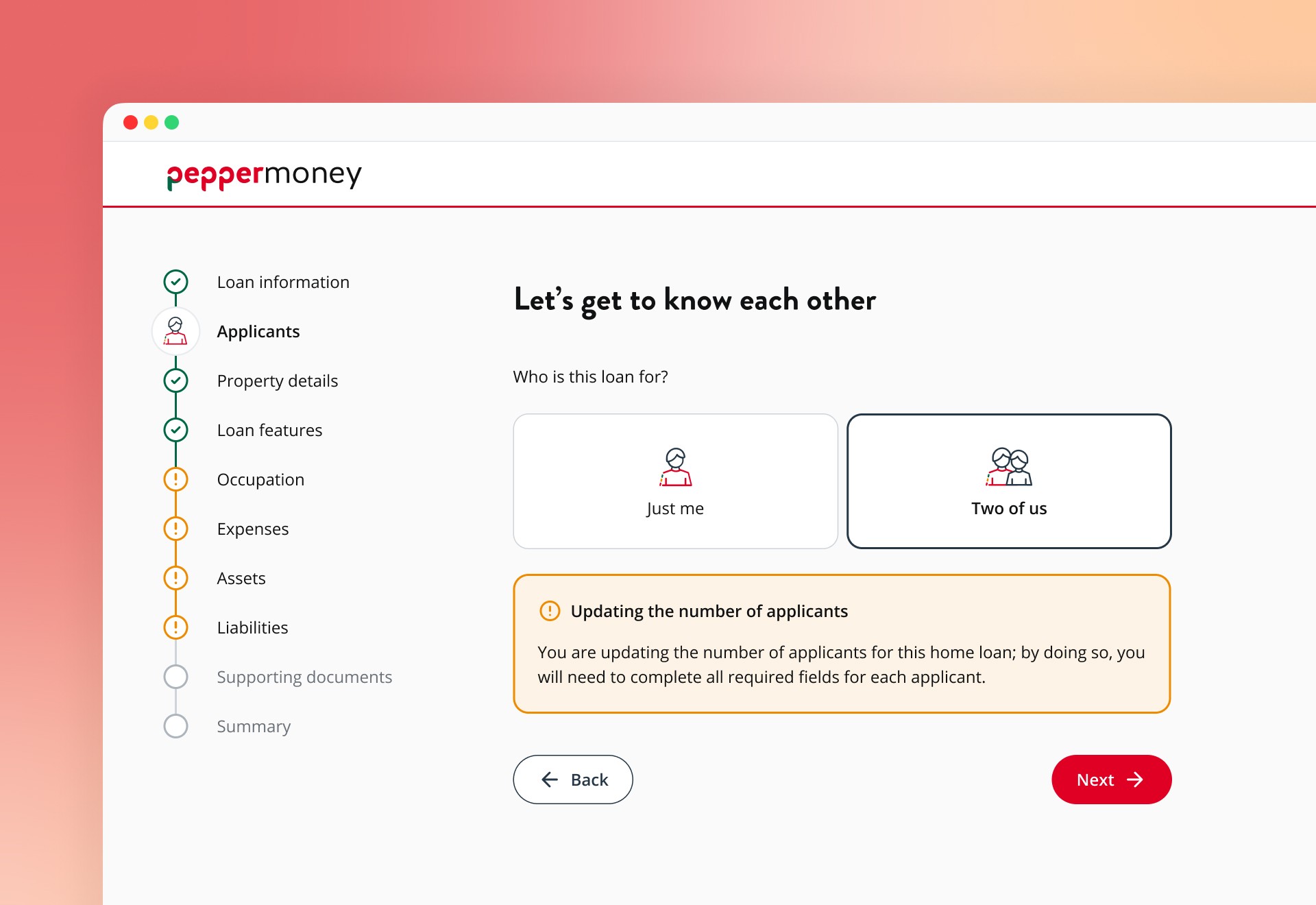 Design Pepper Money's first fully digital mortgage journey. Give customers control. Reduce dependence on the call centre. Build something that could compete.